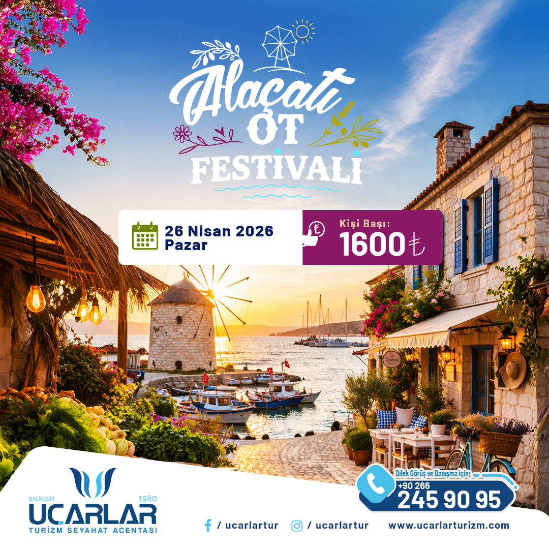 Seferihisar sahilindeki en önemli yerleşimlerden biri olan Sığacık mevkiine geçiyoruz burada sabah kahvaltısı için serbest zaman veriyoruz. Daha sonra Ot Festivaline katılmak için, antik dönemde ismi Agrillia günümüzdeki ismi ise Alaçatı'ya ulaşıyoruz. Kendine özgü taş mimarisi, asma bahçeleri, Yel değirmenleri ve rüzgârı ile ünlü bu güzel kasabada vereceğimiz serbest zamanda dileyenler taş evlerin avlusunda öğle yemeklerini alabilirler. Daha sonrasında Alaçatı Ot Festivali kortej geçişini seyretmek üzere Kortej alanında yerimizi alıyoruz. Birbirinden farklı yöresel kıyafetler giymiş yöre insanın doğadan topladıkları çeşit çeşit otları sergiledikleri kortej geçişi sonrası Alaçatı'nın taşla kaplanmış daracık sokaklarında dolaşıp, bol bol fotoğraf çekip, yöresel lezzetlerin tadına bakabilirsiniz. Tarihteki 12 İon kolonisinden biri olan ve antik dönemdeki ismi Erythrai olan Türk turizm inin gözbebeği Çeşme ye ulaşıyoruz. Burada biraz olsun yol yorgunluğunu atıp, dinlenmek üzere kısa bir mola veriyoruz. Çarşısında verilen serbest zamanı ardında Dönüş yolculuğuna geçiyoruz.