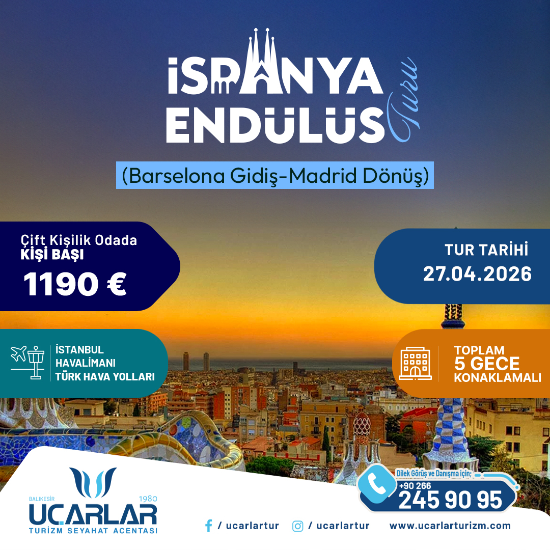 İstanbul Havalimanı Dış Hatlar Gidiş Terminalinde buluşma. Türk Hava Yolları’nın tarifeli uçağı ile Barselona’ya uçuş. Barselona’ya varışımıza istinaden şehir turumuza başlıyoruz. Cristof Colomb Heykeli, La Sagrada Familia Kilisesi, La Ramblas Caddesi, Montjuic Tepesi, İspanya ve Catalunya Meydanları, Paseo de Gracia, Gran Via Caddesi, Endülüs Arenası ve Olimpic Liman, Barcelona'nın en ikonik ve büyüleyici noktalarından İspanyol modernist mimar Antoni Gaudí'nin eserlerinden biri olan renkli mozaikler ve organik şekillerle süslü bir açık hava müzesi Park Güell görülecek yerler arasındadır.Şehir turu sonrası otelimize transfer. Akşam yemeği ve konaklama.