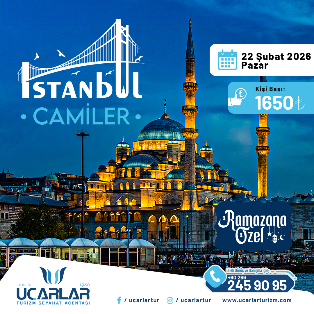 GEZİLECEK YERLEREyüp Sultan Cami - Fatih camii - Ayasofya - Sultanahmet - Eminönü Cami - Çamlıca Cami